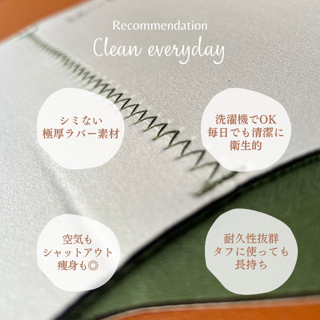 クロロプレンラバー素材は水回りにも多く使われる頑丈なゴム素材で、毎日頻繁に使用しても生地が伸びてしまう心配もなく、長くご使用いただけることも、布生地製の腹巻きとの違い、大きな特徴の一つです。